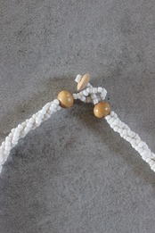 ビーズで作られたチェーンにシェルのモチーフがついた美しいネックレス。木製の留具もアクセント。