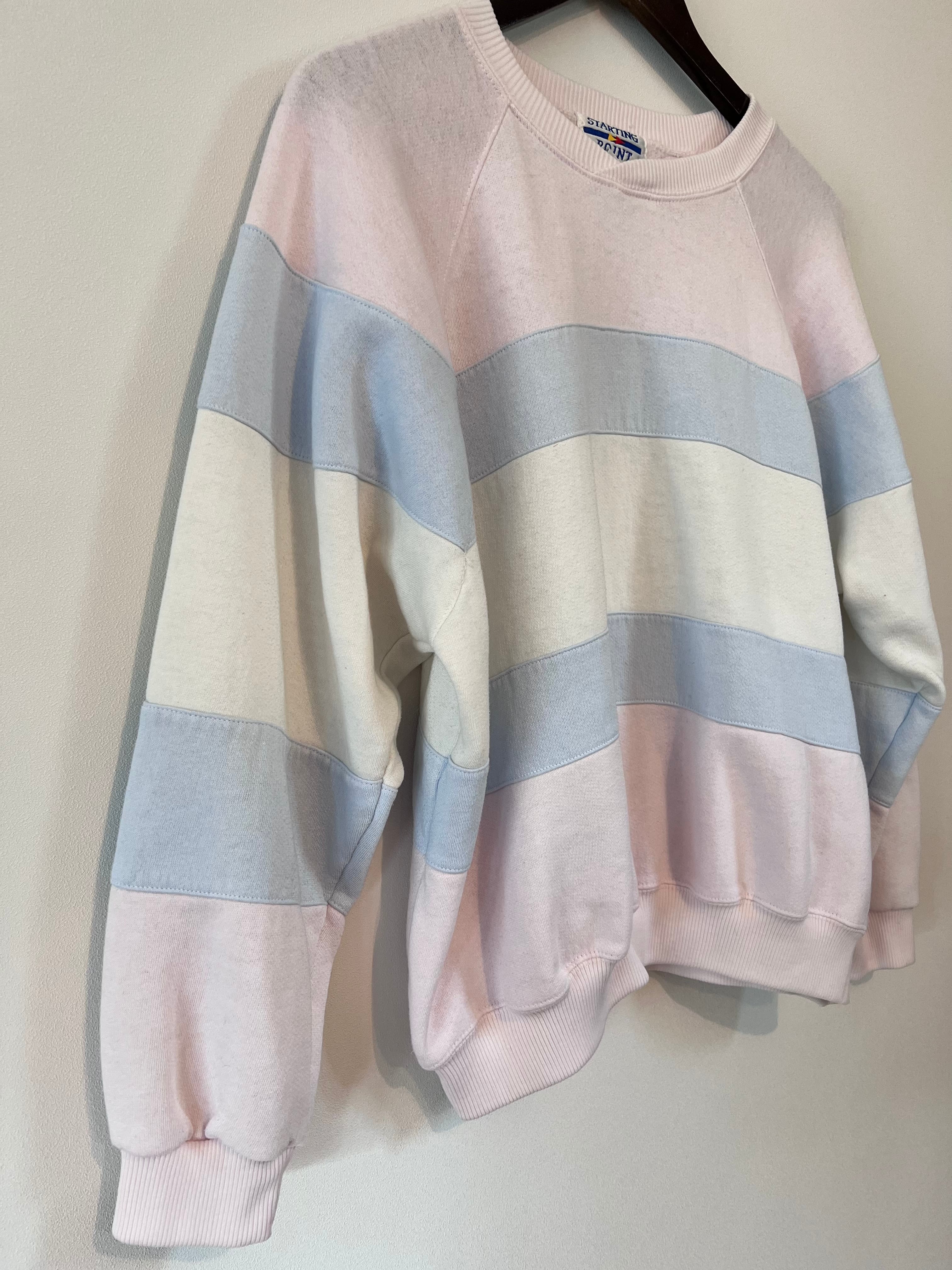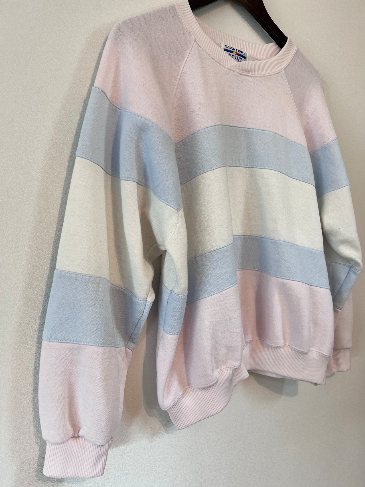 淡いピンク、ブルー、ホワイトのボーダーの春らしいスウェット。