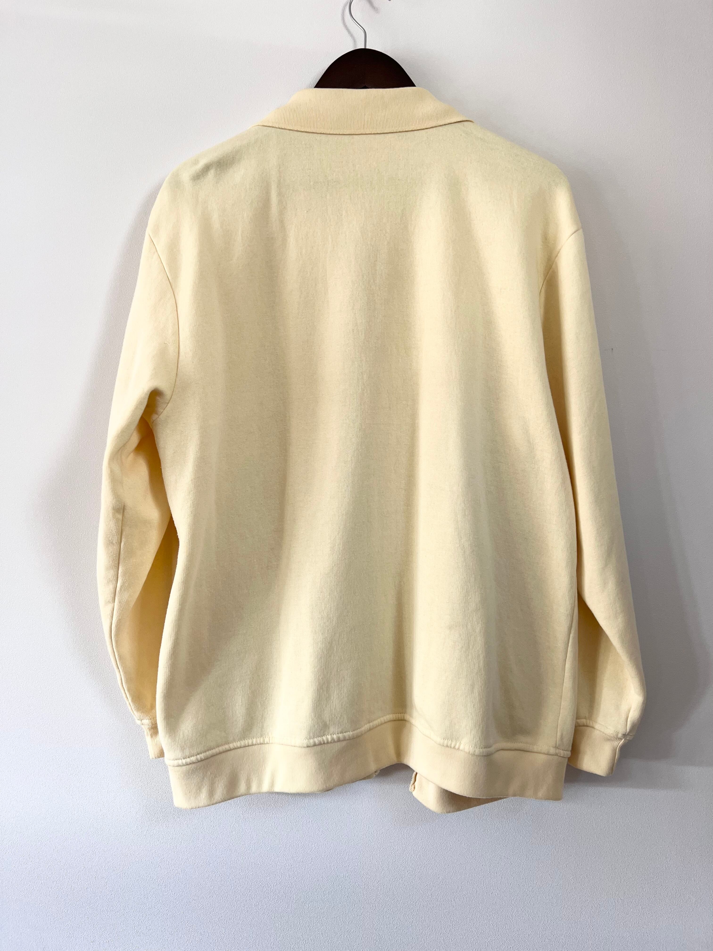 リブ素材の襟や裾、イエローで統一されたスナップボタンなど、シンプルながらディテールのよい1着。