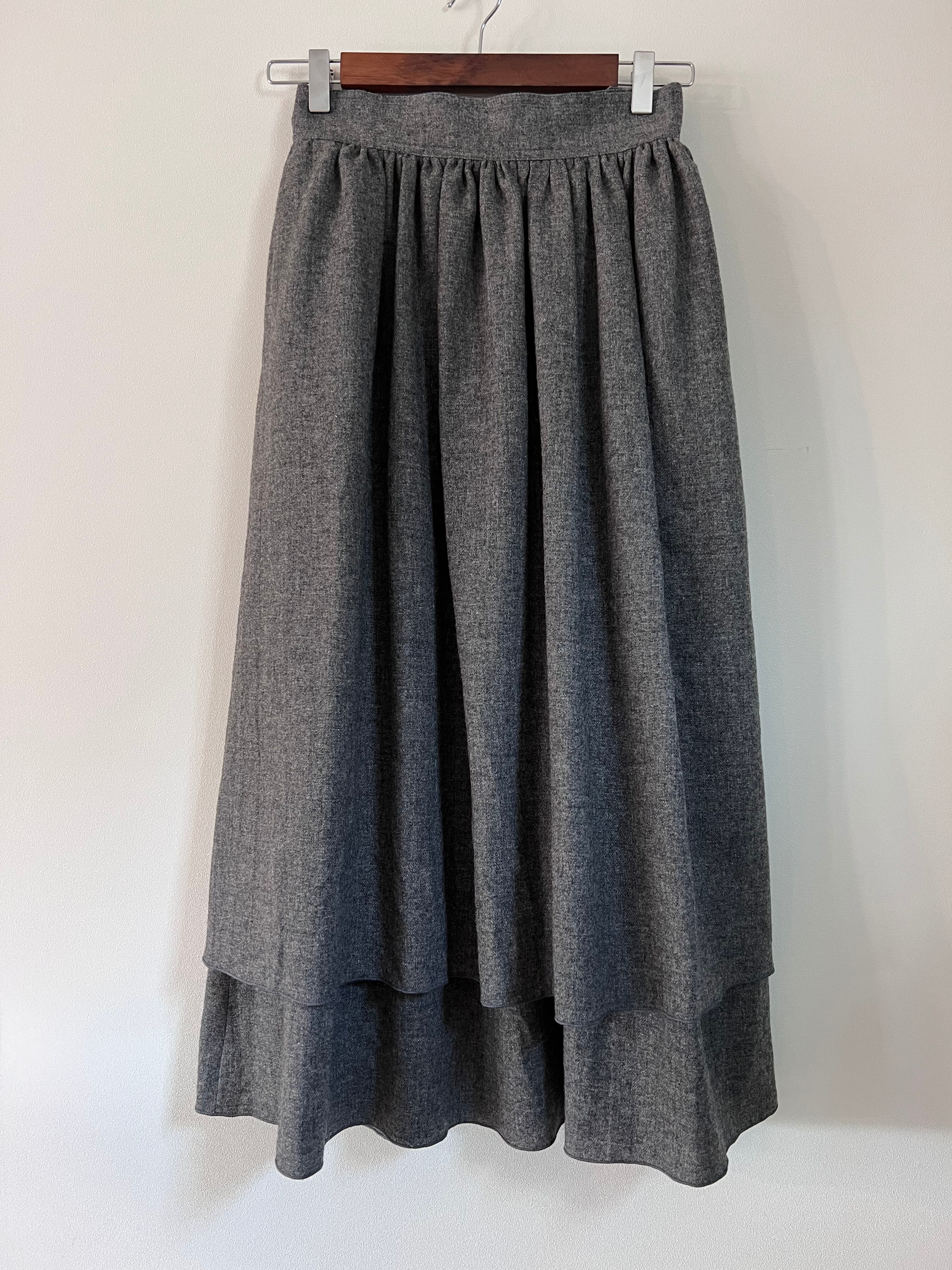 同素材で2段重ねになったデザインのレイヤードスカート。