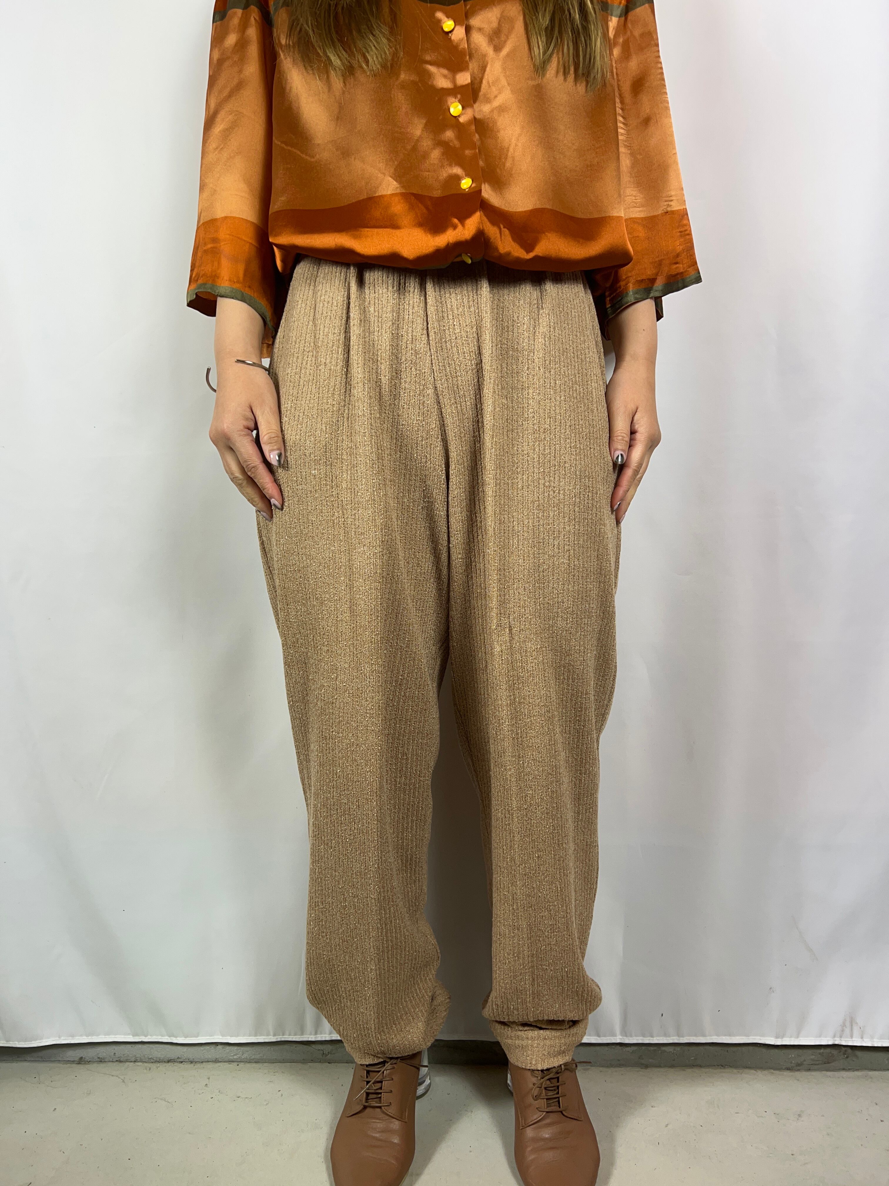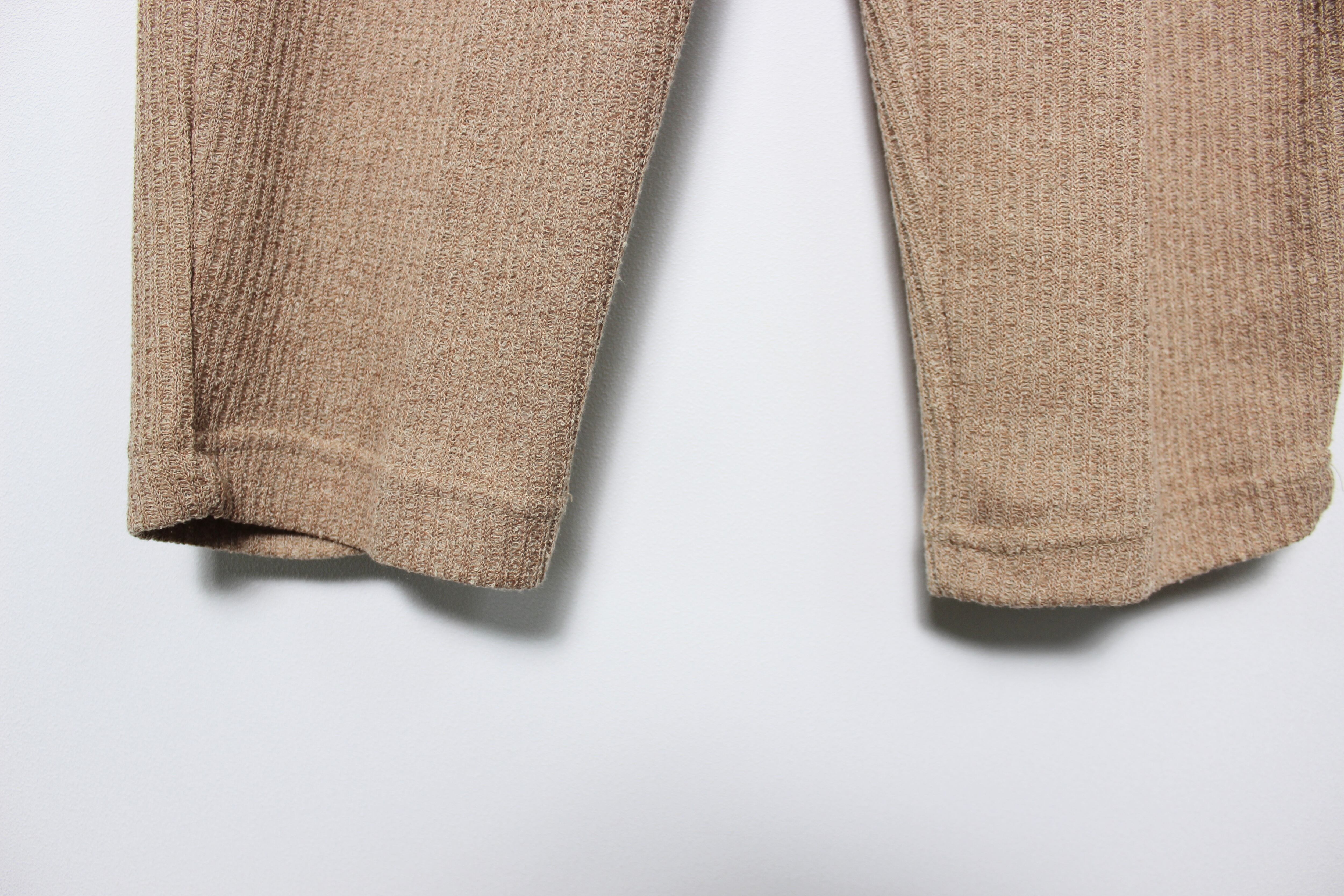 伸縮性のあるコットン混の生地で、着心地のよいパンツ。裾絞りの綺麗なシルエットで、コーディネートの幅も広がる万能なボトムスです。