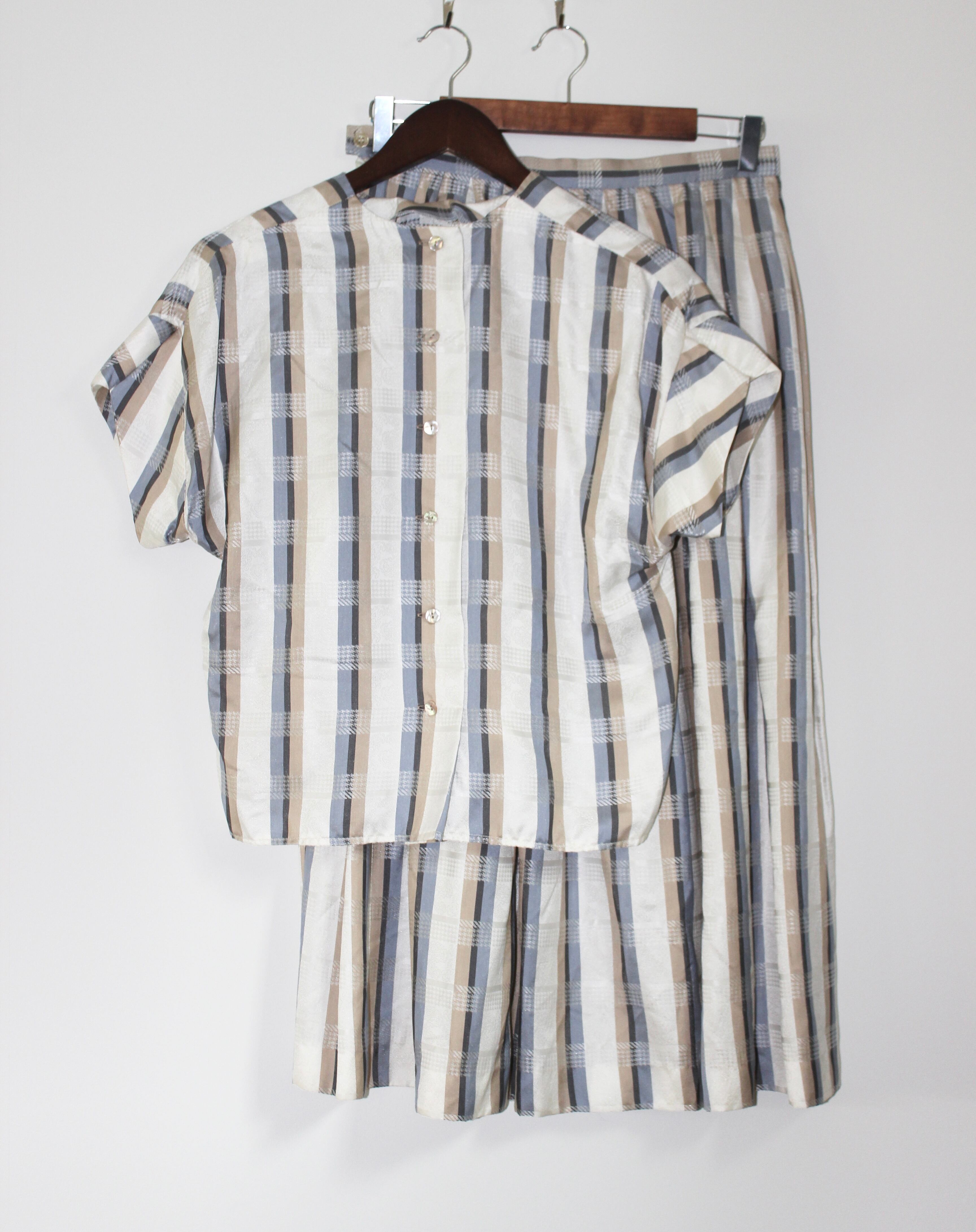 White / Plaid Shirt & Skirt Set