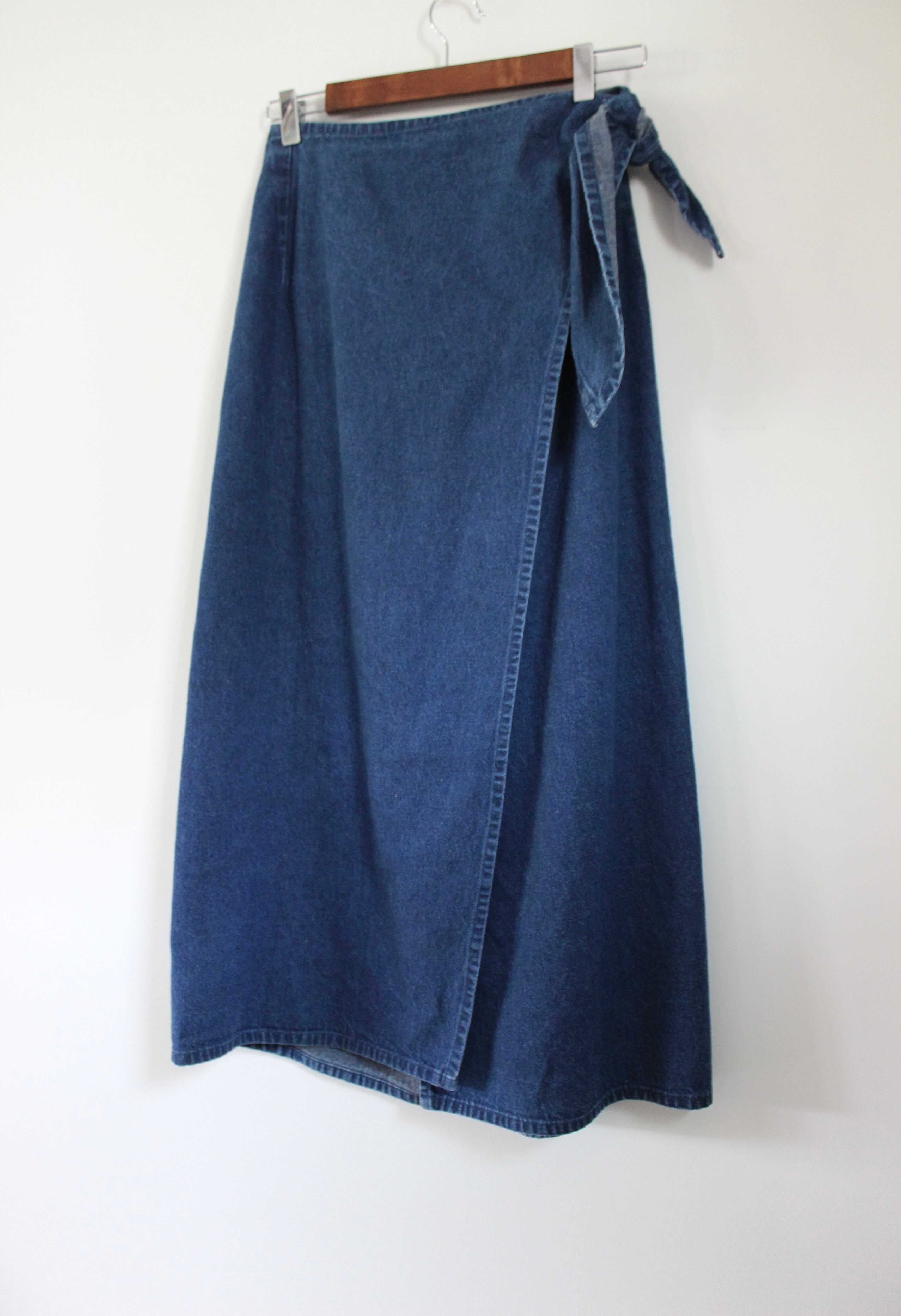 Made in USAのデニムの巻きスカートは、サイドで結ぶスタイル。すとんとストレートなシルエットが特徴的。